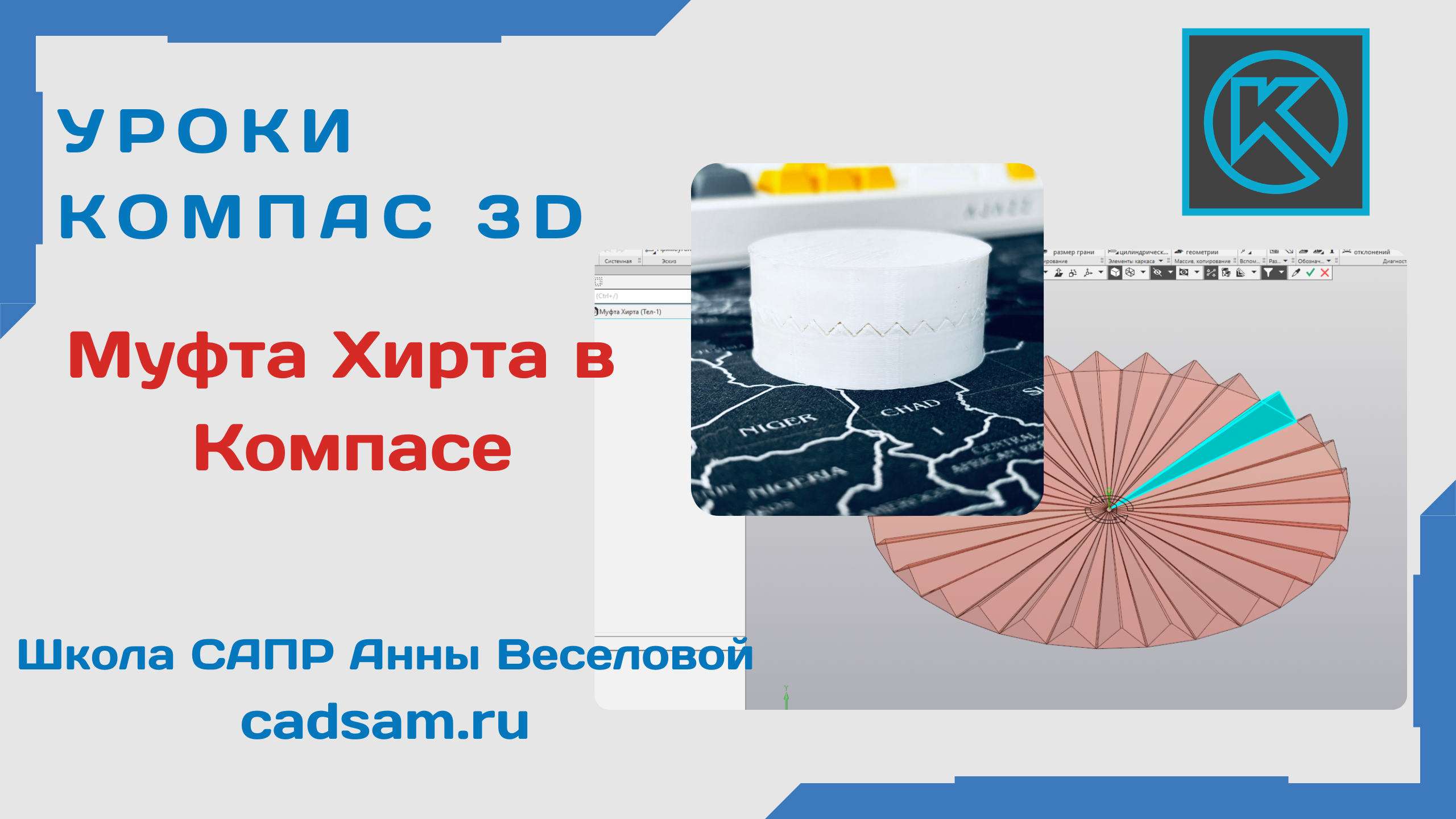 Сегодня вышел урок по моделированию муфты Хирта в Компас 3D.